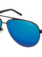 Ces lunettes de soleil arborent une monture rectangulaire moderne avec une finition bleu mat, complétée par des verres miroir bleus. Leur design sportif est accentué par des détails en caoutchouc sur les embouts de branche, assurant à la fois style et confort.